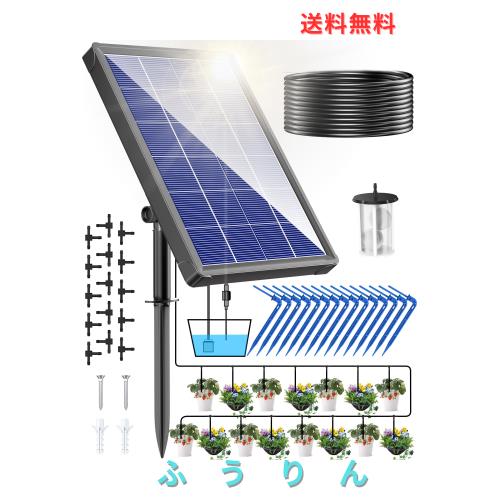 [ソーラー自動灌水器]電源も水道も要りません。ソーラーパワーで自動給水、複雑な配線等が一切いりません。太陽光で動くポンプが水タンク(別売り)からチューブを通して複数のノズルに自動配水目的と規模に応じた水やりを実現出来します。2200mAh充電電池内蔵していますので、曇りの日でも給水可能。