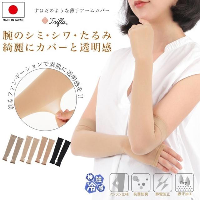 ストッキングを製造する日本の工場で作った薄手のアームカバーです。