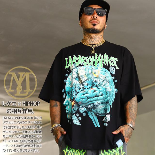 残り僅か【30%OFF】LIVE MECHANICS Tシャツ 半袖 メンズ レディース 黒 大きいサイズ ライブメカニクス おしゃれ 派手 脳 ロボット AI 人工知能 並行性制御 ドル柄 ビッグシルエット b系 ヒップホップ ファッション レゲエ ストリート系 服 2025春夏 新作 LMSUMT120
