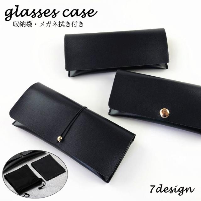 メガネケース 収納袋 メガネ拭き 3点セット サングラスケース 眼鏡入れ めがね ソフトケース レザー調 無地 おしゃれ シンプ