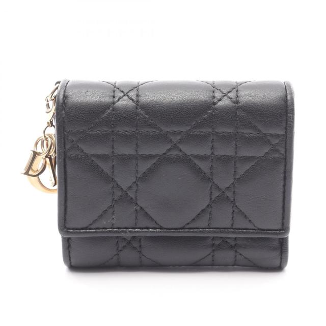 クリスチャンディオール Christian Dior LADY DIOR ロータスウォレット 三つ折り財布 財布 レザー レディース ブラック系 【中古】