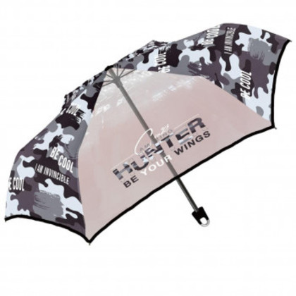 商品詳細:ペイント風のカモフラージュとクールなロゴがかっこいいです。 生産国:中国 素材・材質:生地:ポリエステル(一部ポリエチレン樹脂使用)親骨:鉄、グラスファイバー中棒:鉄手元:ABS マット 商品サイズ:全長:26.5cm、直径:91cm、親骨:50cm 重量:220g 仕様:開閉:手開き