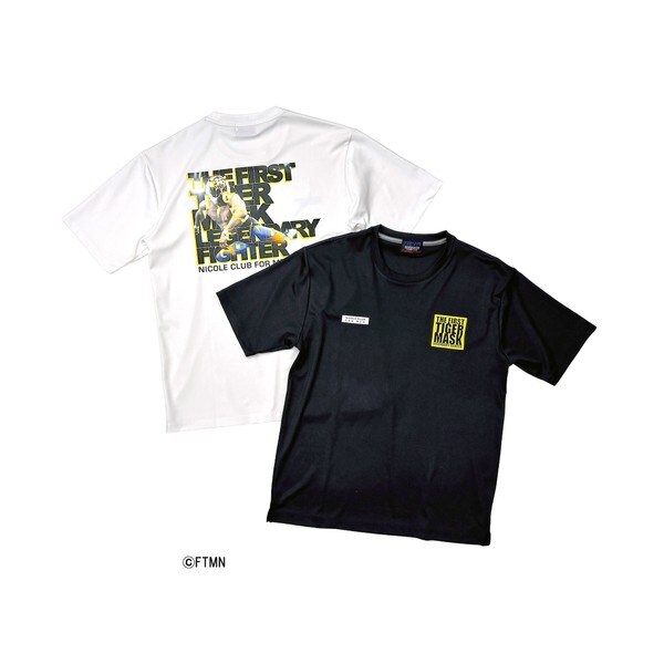 プロレスラー初代タイガーマスク氏と武藤敬司氏とのコラボTシャツ企画。フロントはスタイリッシュなデザインロゴを厚盛りラバーで表現。バックスタイルにインパクトのあるデザインモチーフを昇華転写シートでプリントしています。多技法の高級感に加えポリエステル素材を生かした発色の良さと光沢感が上質な印象。伸縮性に優れたストレッチ素材の為 動きを妨げない快適な着心地を感じていただけます。