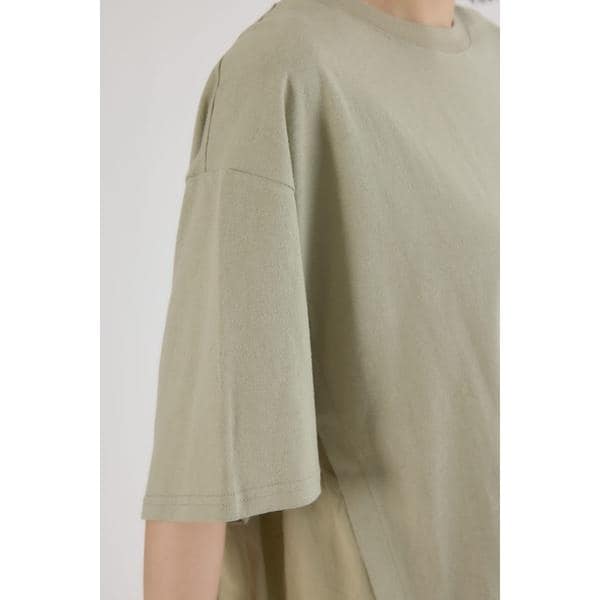 ■ポイントフロントはシンプルなワンポイント刺繍、バックはスクリプトのロゴとギャザーのよった布帛切り替えが女性らしいTシャツ。■ディティール体のラインを拾わないので気になる体型隠しにもおすすめ。■スタイリングタックデニムなどボーイッシュなボトムスと合わせて甘辛なコーディネートにするのがイチオシ。■生地OE糸を使用していて、繊維の間に空間があり、適度な空気を含んでいるためシャリ感(ザラ感)があるのが特徴の生地です。プリントの出方に個体差がありますが、二次加工特性によるものです。プリントを重ねるとくっついたり色移りの可能性がありますので注意してください。プリント商品の為、着用・洗濯によリ白化する場合があります。■透け感:ややあり■光沢感:なし■伸縮性:あり■裏 地:なし[注意事項]※画像の商品はサンプルです。実際の商品と仕様、加工が若干異なる場合があります。※画像の商品は光の照射や角度、お使いのモニター環境により、実物と色味が異なる場合がございます。※着用、お取り扱いの際は、アテンションタグをご確認ください。