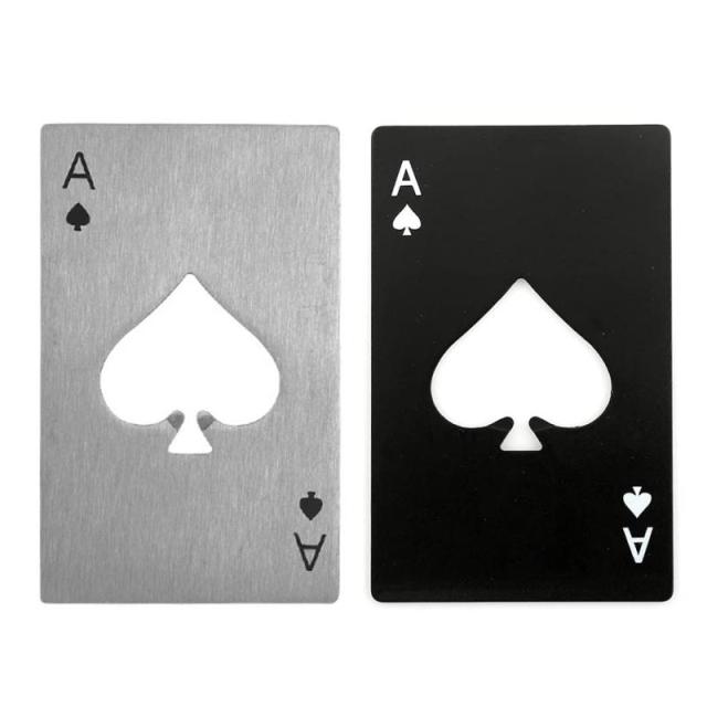 XSAJU 栓抜き おしゃれ トランプ 2枚セット スペード エース カード タイプ 瓶 蓋 オープナー ブラック シルバー