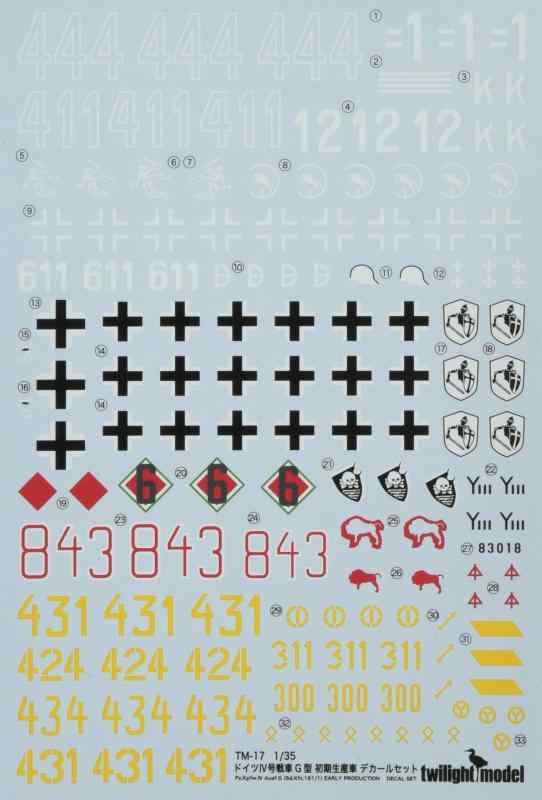 トワイライトモデル 1/35 ドイツ軍 IV号戦車G型 初期生産車 + IV号戦車F型 デカールセット プラモデル用デカール TM-17