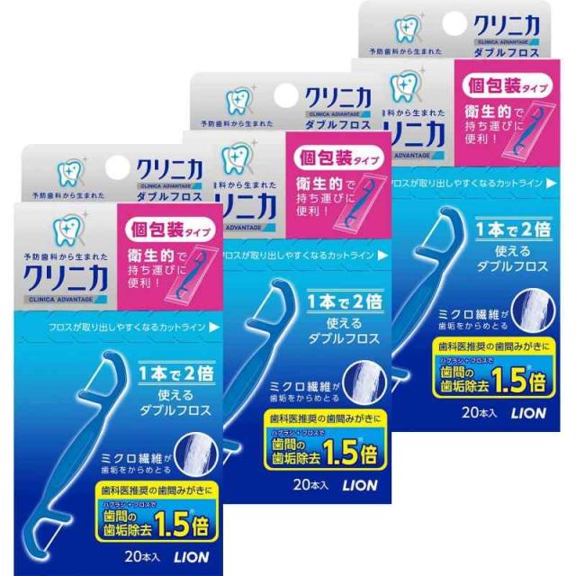 クリニカ アドバンテージ ダブルフロス 20本×3個 個包装タイプ フロス デンタルフロス 歯間クリーナー 歯垢除去