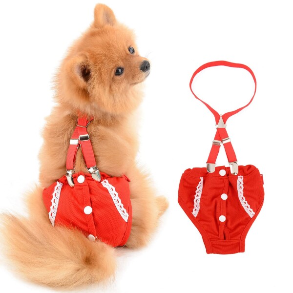 SMALLLEE_LUCKY_STORE マナーウェア 女の子 犬 おむつサスペンダーで 生理用パンツ スカート犬 猫 老犬 メスペットの介護用オムツ,可愛いレース,赤色