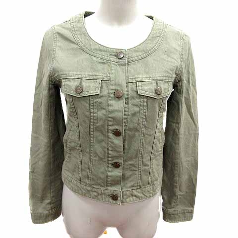【中古】スパイラルガール SPIRALGIRL ノーカラージャケット デニム 長袖 F 緑 グリーン /YK レディース