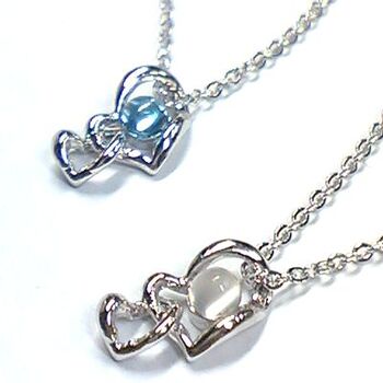 日本製 揺れるハートが可愛い ダブルハート天然石ペンダント