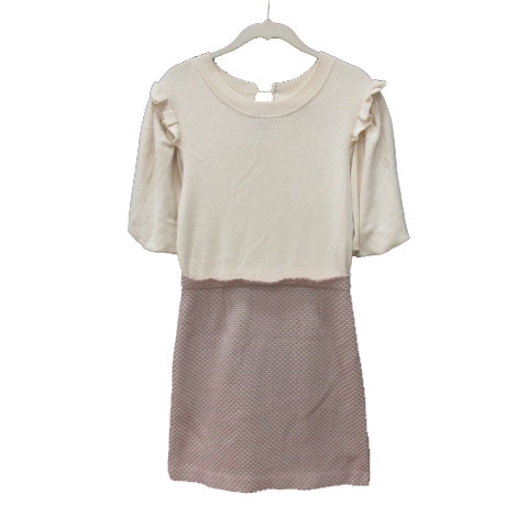 【中古】リリーブラウン ワンピース ひざ丈 切替 ニット フリル バルーンスリーブ 五分袖 1 白 アイボリー レディース