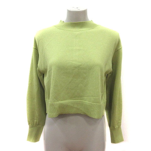 【中古】ストロベリーフィールズ STRAWBERRY-FIELDS ニット カットソー ショート丈 長袖 黄緑 レディース