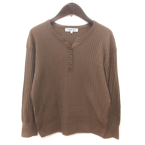 【中古】インディヴィ INDIVI ニット カットソー ヘンリーネック リブ 長袖 38 茶 ブラウン /MS レディース