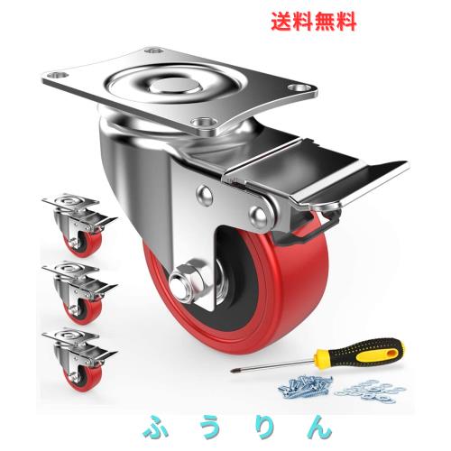 COOWOO 2インチ キャスター 4個セット 車輪 ブレーキ付き 高耐久性 単個耐荷重100kg 360度回転 静音 ミュートシリーズDIY家具交換キット