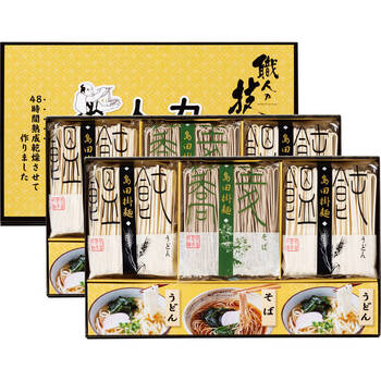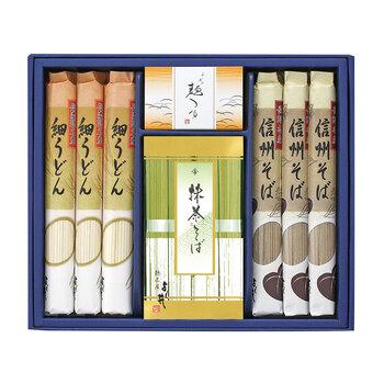 ■:抹茶そば 80g×4、信州そば 120g×3、細うどん 120g×3、めんつゆ 30ml×2