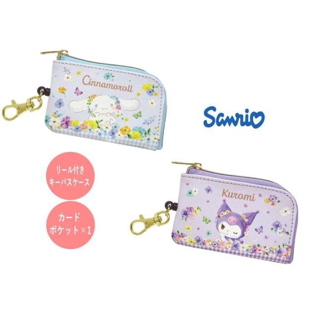 シナモロール クロミ リール付きパスケース キーケース 定期入れ 花柄 こども キッズ かわいい サンリオ