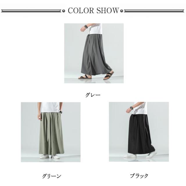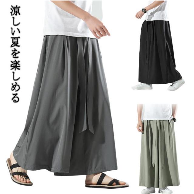 無地 ガウチョパンツ 接触冷感 サルエルパンツ ワイドパンツ 涼しいズボン 大きいサイズ 春 メンズ 夏服 夏 バギーパンツ イージーパンツ 薄手 冷感 袴パンツ サルエル ゆったり パンツ 父の日