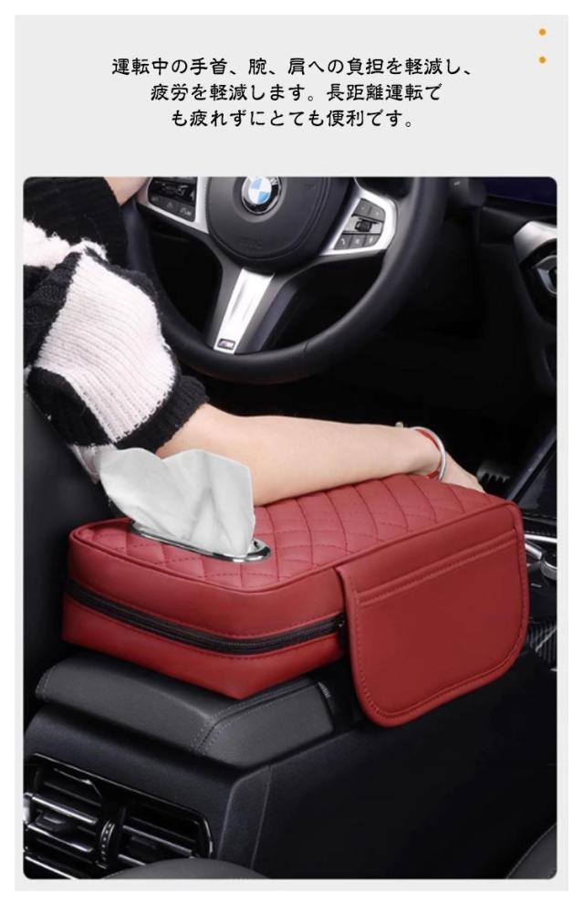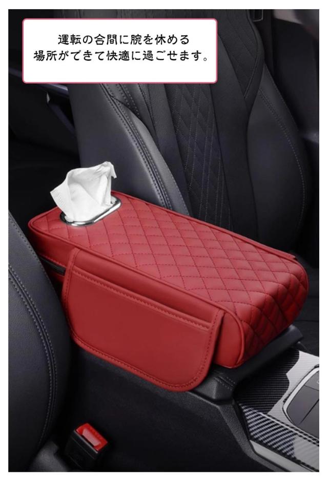 肘掛けクッション 車載 肘掛け アームレスト ティッシュケース ティッシュボックス 肘置き 車用アームレスト 小物入れ コンソール 収納可能 車のアームレストクッション 疲労軽減 コンソールクッション 車載 汎用 軽自動車 普通車 汎用