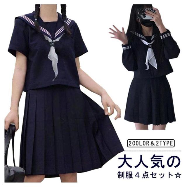 制服 4点セット 女子高生 セーラー服 スカート 紺 上下セット 中学生 高校生 学生服 スクール制服 制服コスプレ ハロウィン コスプレ 仮装 コスチューム スクール jk服 可愛い フォーマル 文化祭 卒業式 学園祭 発表会 送料無料