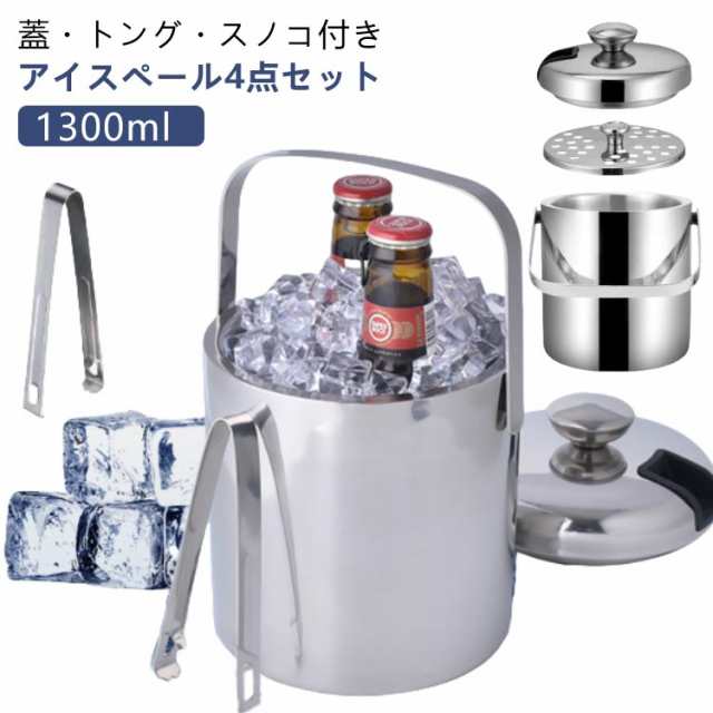 アイスペール ステンレス セット ワインクーラー トング おしゃれ 4点セット 二重構造 1.3L アイスペール 蓋 真空断熱 保冷 スノコ付き 1.3リットル 小型 氷 溶けない コンパクト アイスバケット 持ちやすい ウイスキー