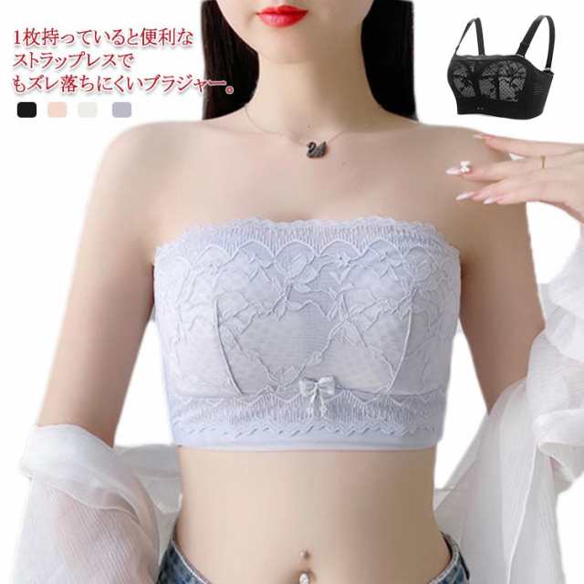 ブラジャー 肩紐なし 谷間見え防止 レース ストラップレス ブラジャー チューブトップ オフショルダー 下着 レディース ブラ ストラップなし 谷間隠し 小さく見せるブラ 着痩せブラ 夏用 女性下着 可愛い フェミニン 送料無料