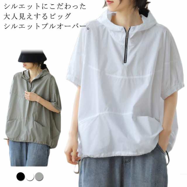 レディース パーカー 夏 半袖パーカー 半袖 tシャツ フード付き 半袖Tシャツ トップス プルオーバー 体型カバー ビックシルエット オフィス 通勤 通学 旅行 大きいサイズ 無地 薄手 ゆったり