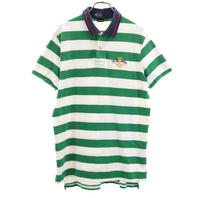 Polo by Ralph Lauren ポロバイラルフローレン ボーダー柄 半袖 ポロシャツ L グリーン系 鹿の子地 インパクト21 メンズ