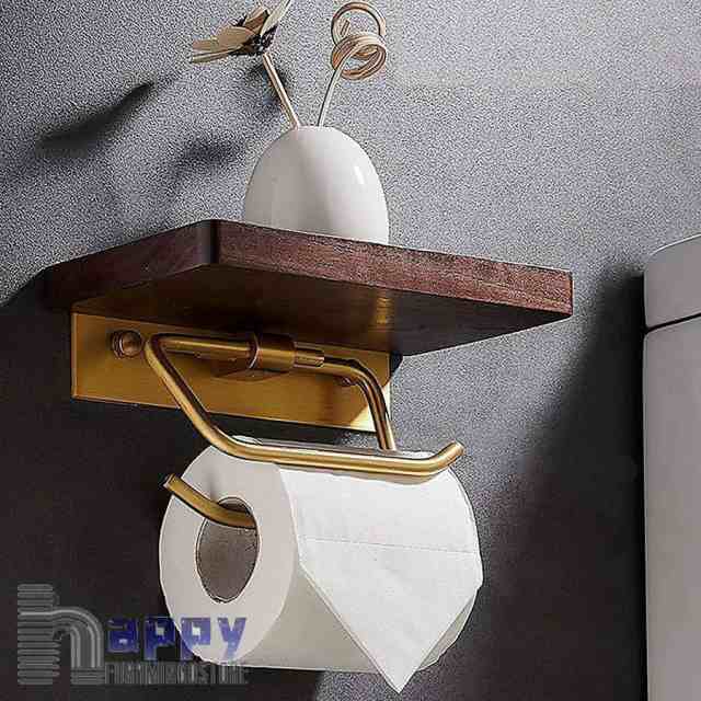 トイレットペーパーホルダー 真鍮製ダブルフック アンティーク 北欧 木製 アイアン ブラウン ペーパーホルダー 棚 棚付き 小物置きおしゃれ 収納