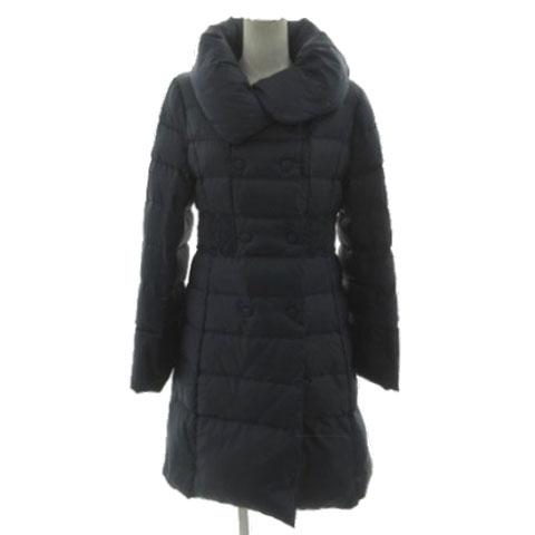 【中古】スーナウーナ Sunauna ダウンコート ボリュームカラー レース切替え ダブル 軽量 ダウン90% ネイビー 紺 38