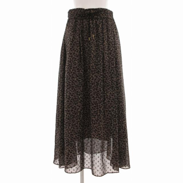 【中古】シップス SHIPS レオパード柄 ギャザー スカート ロング シフォン イージーウエスト F 茶 ブラウン /UO