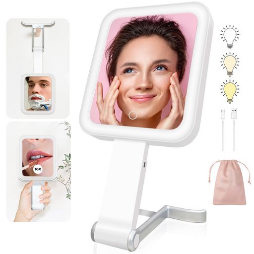 【製品特徴 】多機能の手持ち鏡、スタンド、壁掛け式で使用楽々、LEDライト付きの10倍拡大鏡、明るさ無段階調光 3光色(昼光食/昼白色/電球色)、コンパクトで簡単タッチ操作、旅行持ち運び便利、長時間に使用しない場合はライトが自動消灯し、ライト明るさ記憶もある。