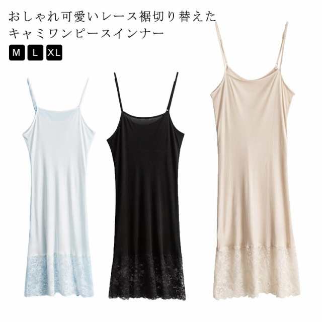 | おしゃれ可愛いレース裾切り替えたキャミワンピースインナー シンプルなデザインだからトップスにひびかず肌着として、透け防止、おしゃれレイヤードなコーデとしてもOK! タイトなシルエットで体にぴったりとフィットして、女性らしいセクシーさもアピール。 滑らかで良く伸びるシルク素材で、冷感あり、静電気軽減ができるスグレモノ♪ サラッと肌滑りも良くロングシーズン(春 夏 秋 冬)快適な着心地。 シンプル無地だからドレスやワンピースのインナーとして大活躍間違いなしです! | |
