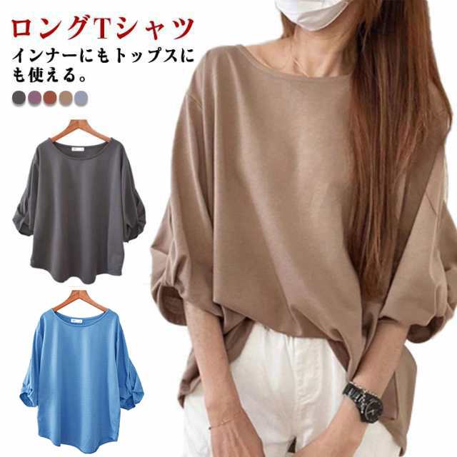 クルーネック 春コーデ カットソー パフスリーブチュニックTシャツ フリーサイズ tシャツ 長袖 クルーネック 丸首 Tシャツ レディース Tシャツ 新作 ロンT 無地 ビッグサイズ 体型カバー カジュアル 秋 春 春秋 トレンド 流行 ロングTシャツ