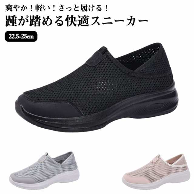 スリッポン レディース ナースシューズ かかと 踏める 靴 スニーカー メッシュ 通気性 厚底 軽量 軽い メッシュスニーカー 黒 白 春夏 疲れにくい シューズ 立ち仕事 疲れない靴 紐なしスニーカー 上履き 大人 ナース 【送料無料】