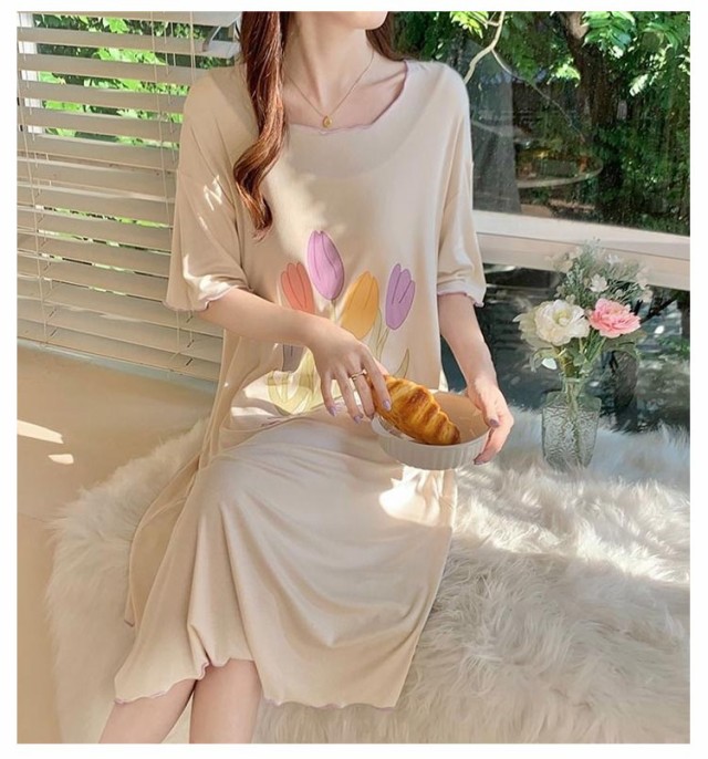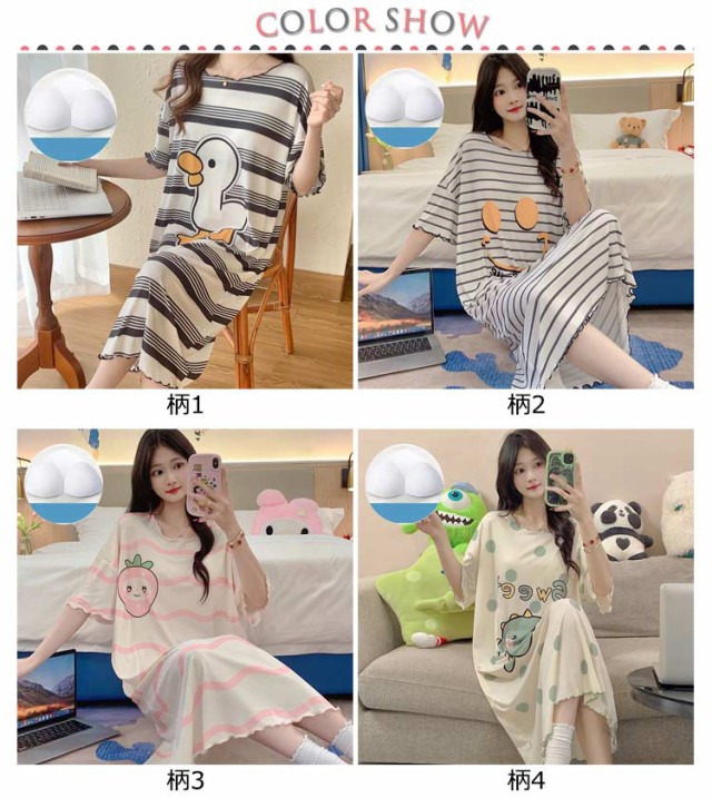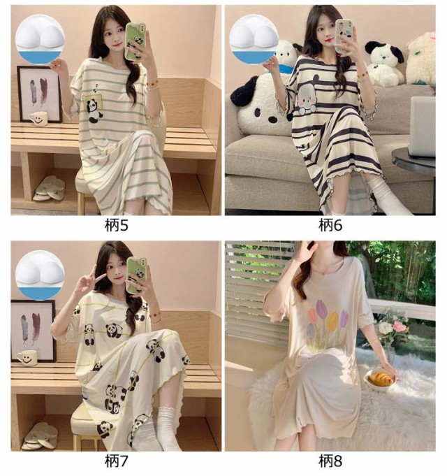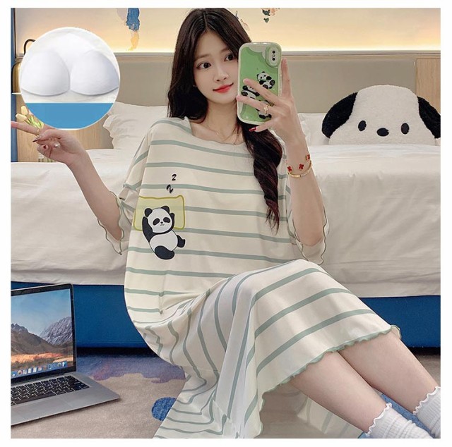シンプル 半袖 大きいサイズ ゆったり ロング ブラカップ付き パジャマ ルームウェア 大きいサイズ ワンピース ロングTシャツワンピース レディース 秋 パジャマワンピース 部屋着 おしゃれ かわいい 薄手 春 夏 かわいい