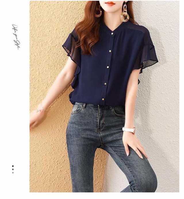 | ふんわり可憐な印象のフリル袖が大人可愛い。 何にでも合わせやすいシンプルデザインのシフォンブラウスです♪ 柔らて通気性の優れた素材で着心地が快適! ボトムはデニムやスカート、スラックス等とも合わせやすいです。 普段着としてだけでなく、オフィスコーデなどのフォーマルなシーンなどにも使える。 | |