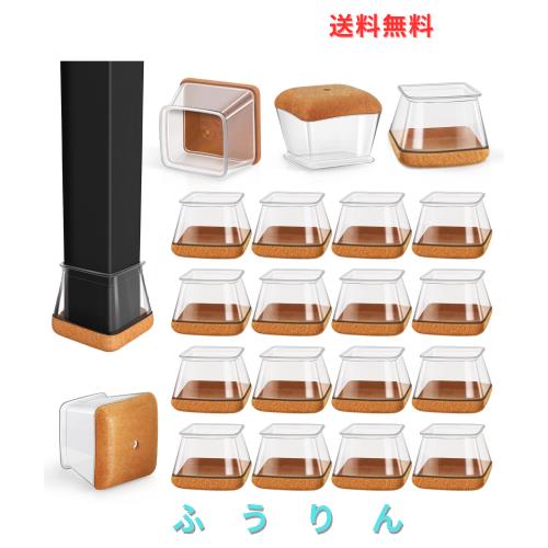 椅子脚カバー四角 椅子の脚カバー椅子脚カバーシリコン 家具足 傷防止 防音 滑り止め 角脚用フェルト巻16個 透明 XL-43~50mm