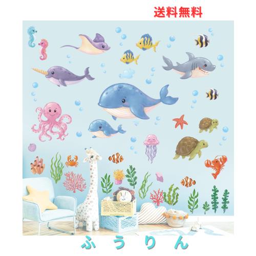【子供の部屋の装飾に最適 】: 水中の海の動物の壁ステッカーは、海の動物を学び、子供部屋、男の子部屋、女の子部屋、ベビールーム、保育園、プレイルーム、寝室?教室?リビング?バスルーム?廊下を飾るのに理想的です。 私たちは、環境に優しい、防水、自己接着性の高い壁シールで作られた高品質の材料を使用しています。また、明るく鮮やかなカラーもご用意しております。