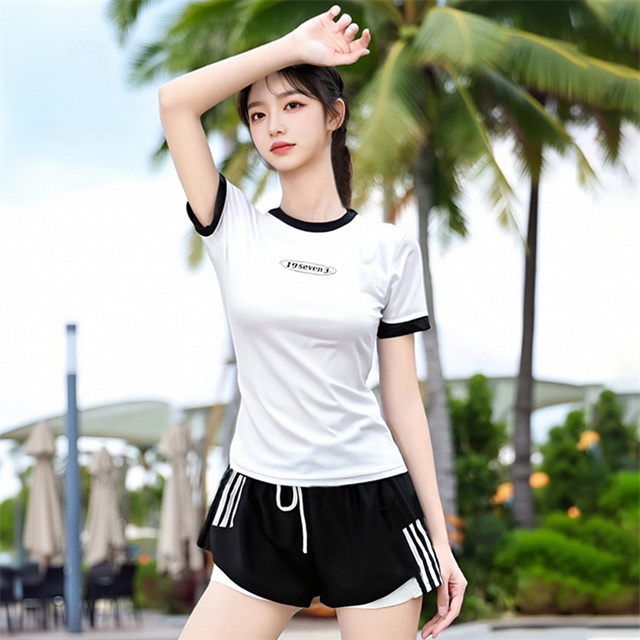水着 レディース 上下 2点セット スポーティー 体型カバー 胸パッド ワイヤーなし セパレート ビーチ プール 海 送料無料