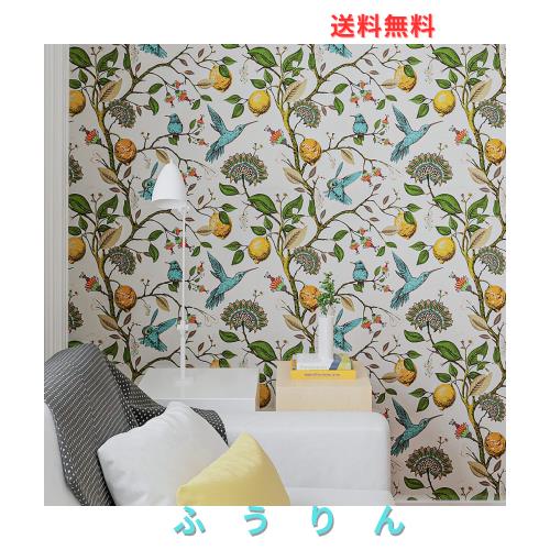 花柄の壁紙シール 寸法とパターン:45 cm×300 cm、はがせる壁紙の各ロールは1.35平方メートルをカバーします。白地で、エレガントな花鳥調。表面はマットで、肌に優しい質感ときれいになのプリント、色あせにくいです