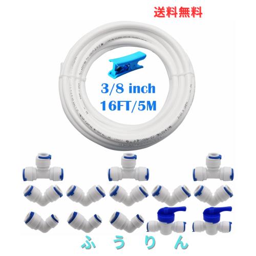 ★パッケージ:5個3/8 ”Lタイプ水フィルターフィッティング、3個3/8” Tタイプ水フィルターフィッティング、2個3/8 ”シャットオフバルブ、3個Lタイプコネクタ1/4”から3/8 ””フィッティング 、5メートルの3/8 ”給水パイプと1個のチューブカッター。十分な量でさまざまな要求を満たすことができます。