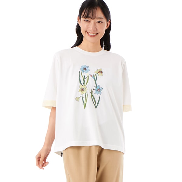 30/−天竺にダファディルの刺繍を大胆に施したTシャツ。