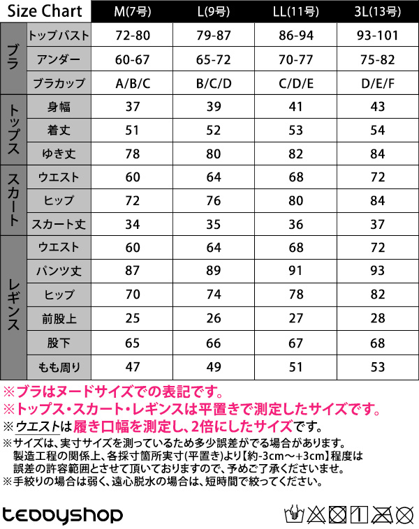 ※トップス・スカート・レギンスは平置きで測定したサイズです。