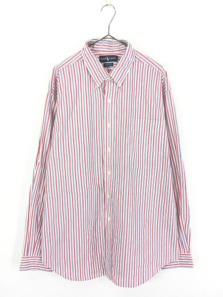 古着 90s Ralph Lauren 「ELLINGTON」 マルチ ストライプ ポケット付 BD シャツ XL位 古着