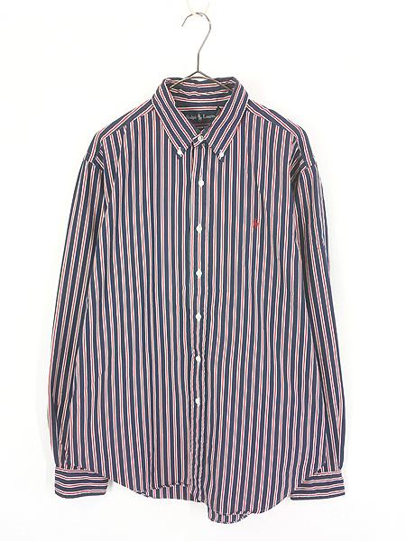 古着 90s Ralph Lauren 「CLASSIC FIT」 紺×白×赤 トリコロール ストライプ BD シャツ L 古着