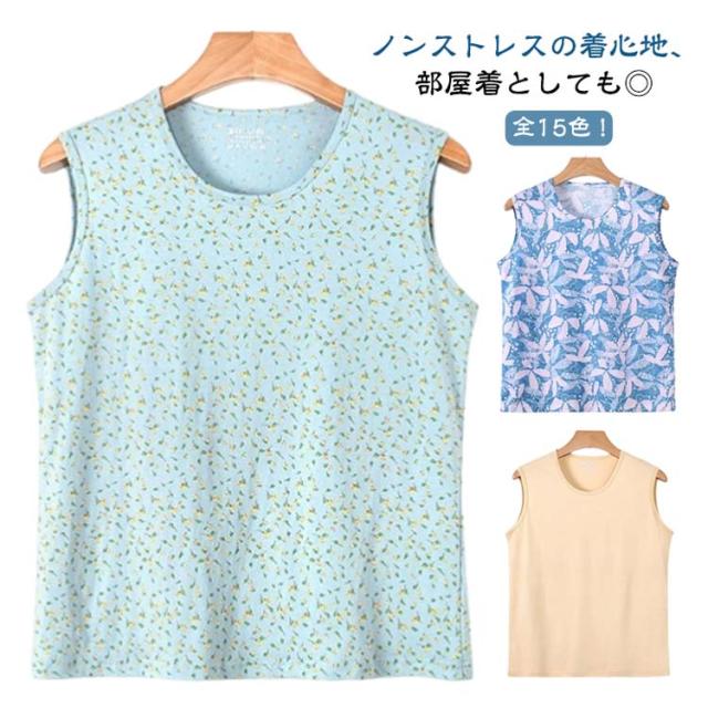レディース タンクトップ ミセス タンクトップ 花柄 綿 コットン 総柄 シニア ノースリーブ 部屋着 インナー 女性 婦人 春夏 トップス 柔らかい 蒸れない 大きいサイズ 袖なしトップス ルームウエア 通気性 送料無料