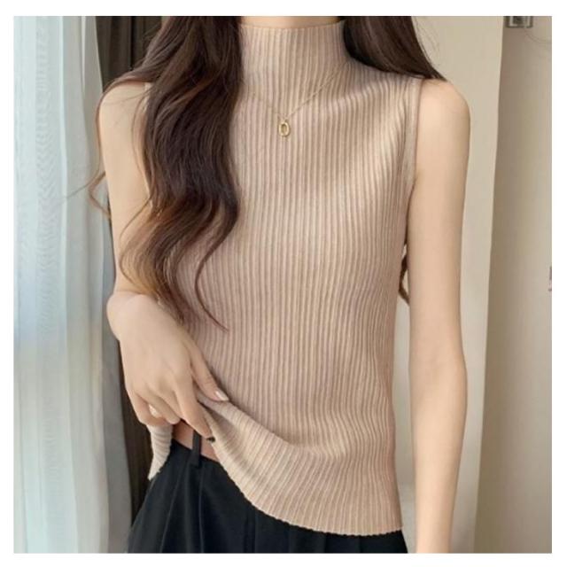 | 2枚セット!女性らしさが引き立つプリーツハイネックニットタンク 上品顔に演出してくれるデザインでレイヤードにも使いやすく、洗練された印象に デイリーユースはもちろん華やかな印象はオケージョンでも活躍 | |