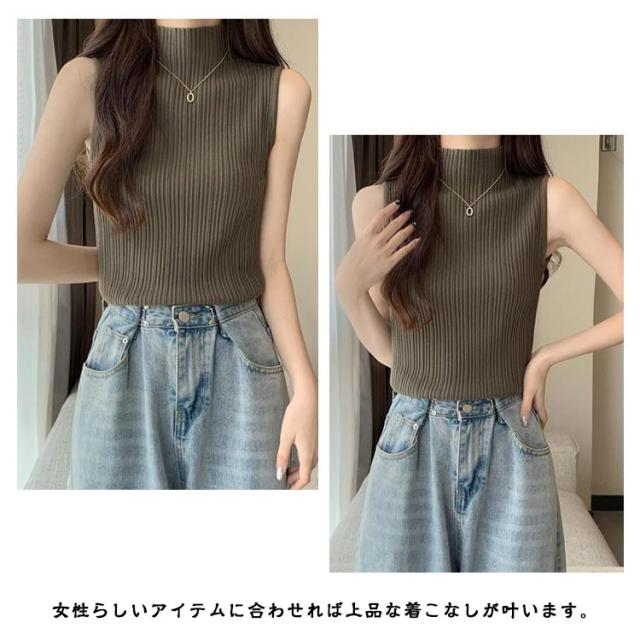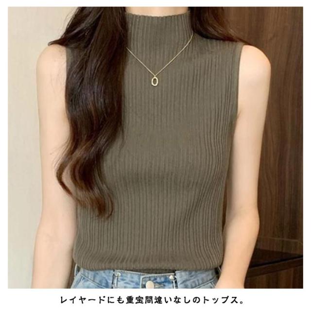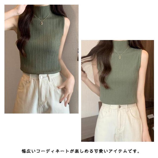 ハイネック プリーツ 夏 リブ タートルネック レディース Tシャツ インナー タンクトップ 2枚セット プリーツ ニットトップス ストレッチ 通学 レイヤード 通学 カジュアル ハイネックニット ノースリーブ トップス 春秋 プリーツ 春 秋 夏 サマーニット