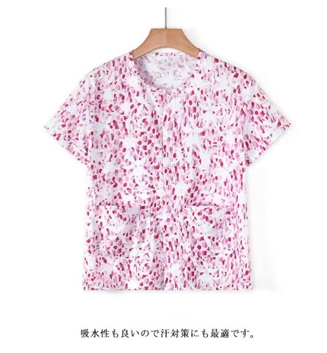 | やさしい印象を演出する小花柄♪ 着脱しやすい前開きインナーシャツです。 通気性の良いコットン生地でサラリと快適な着心地。 吸水性も良いので汗対策にも最適です。 着脱が楽な前開き仕様です。入院や手術、介護はもちろん、夏の日はお部屋で1枚でも過ごせます。 | |