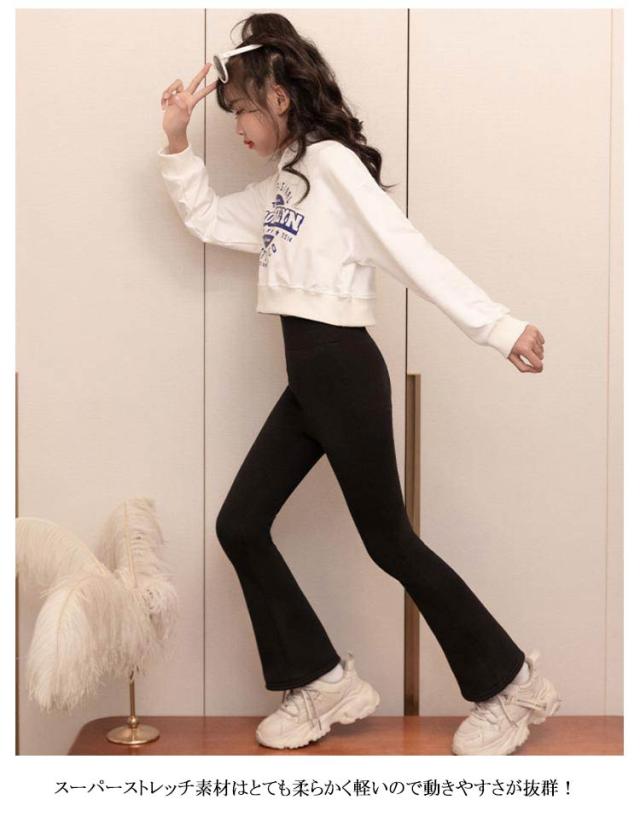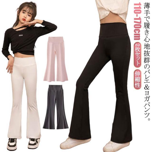 子供服 フレアパンツ バレエパンツ ダンス フレアシルエット レギンス ハイウエスト 長ズボン 2枚セット ジュニア 女の子 キッズ服 ヨガパンツ 美脚 ストレッチ ロングパンツ 伸縮性 110 120 130 140 150 160 170 送料無料
